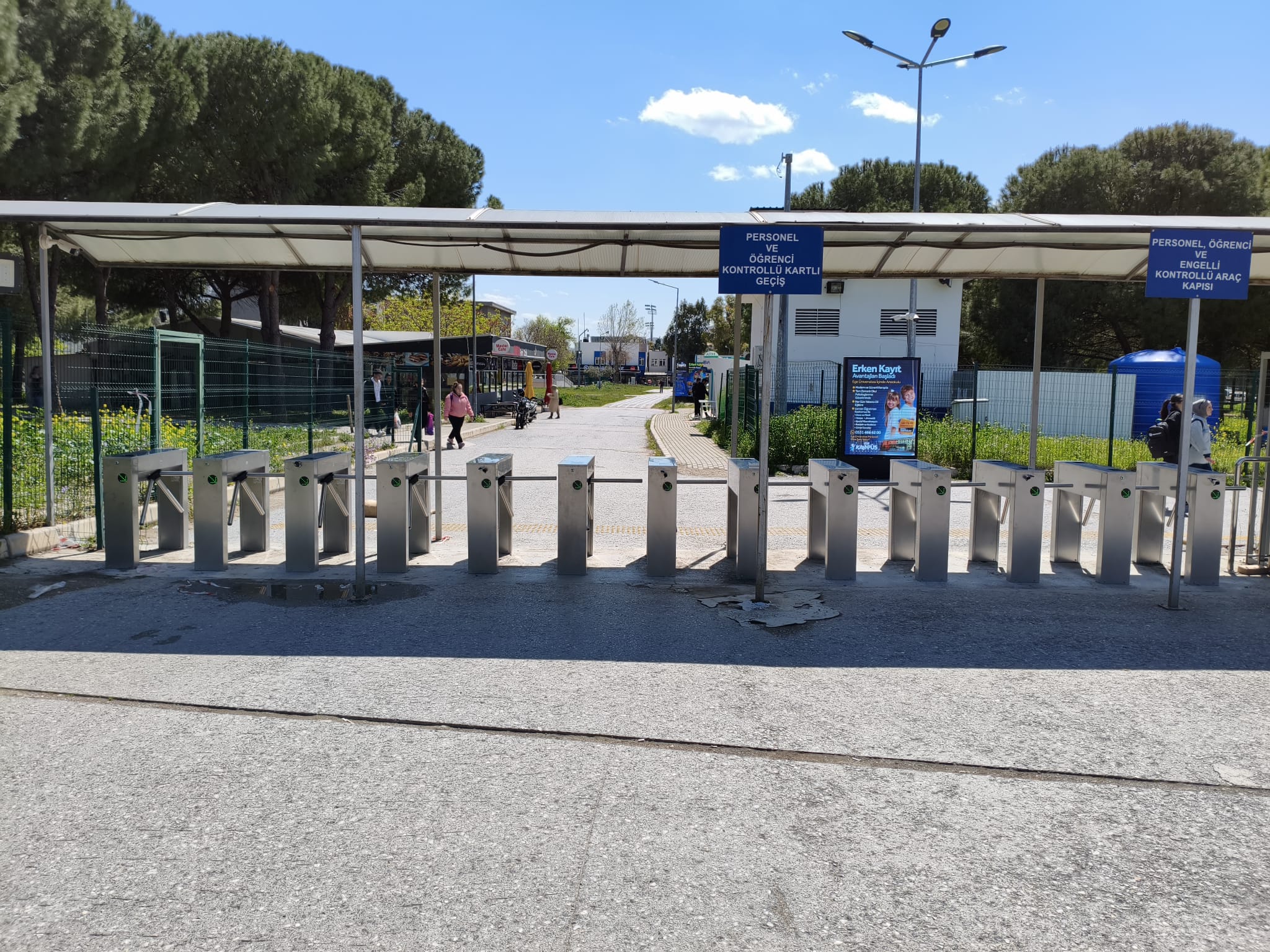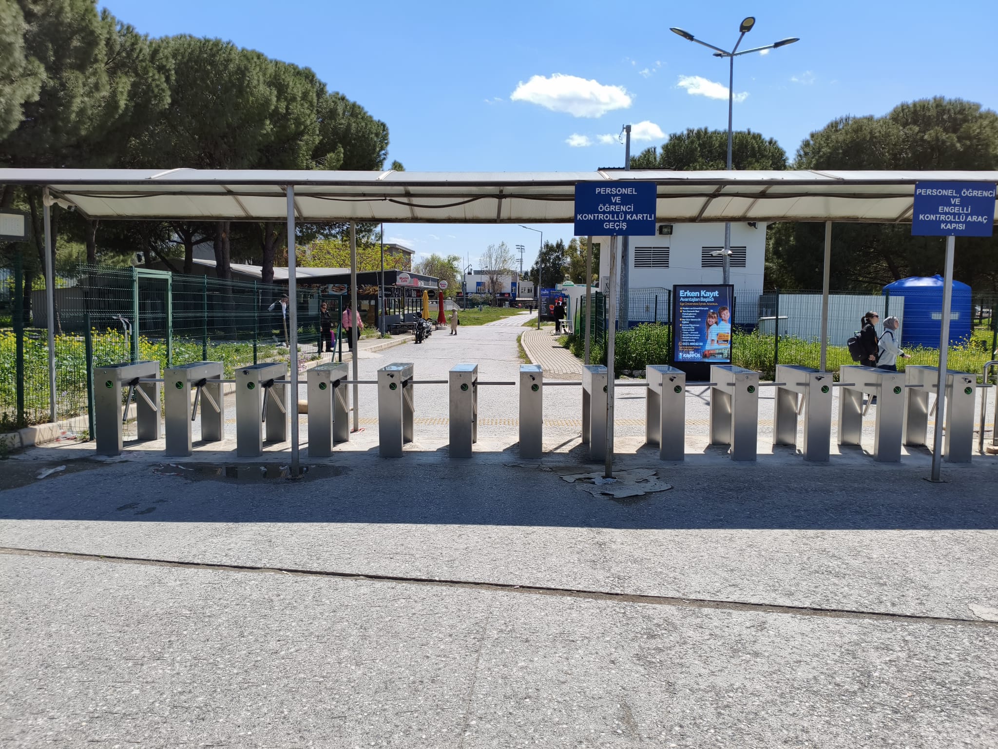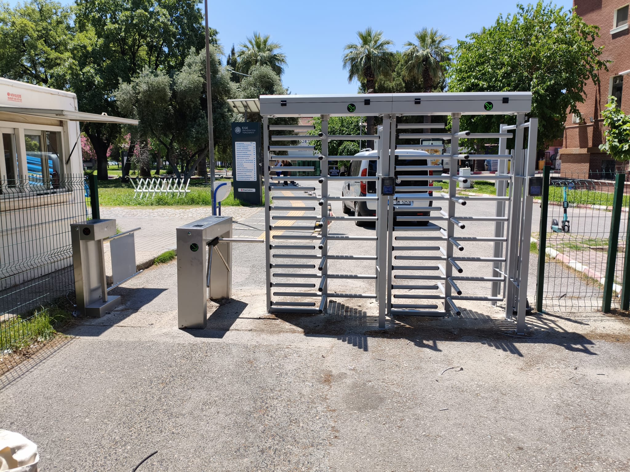 Ege Üniversite kampüs içerisinden bulunan giriş ve çıkış bölgelerine toplam 23 adet bel tipi, 11 adet boy tipi turnike montajlarımız yapılmış olup kartlı geçiş sistemi tamamen yenilenmiştir.